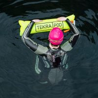 engineered open water swimming safety device with no drag. Instantly inflate for support or to alert people. Quickly detach and save others.