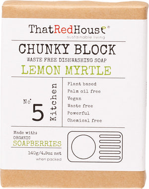 Your CHUNKY BLOCK can also be used with a ‘That Red House’ Soap cage for even more versatility in the kitchen. CHUNKY BLOCK also makes a perfect plant based, powerful, all natural hand soap and general cleaner.