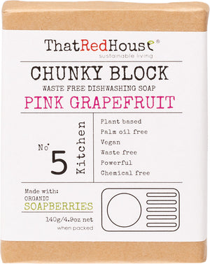 Made using powerful Organic Soapberries and pure Australian Pink Grapefruit Essential Oil, these CHUNKY BLOCKS are the perfect way to replace liquid dishwashing detergent, hand soap, and general cleaning soap.